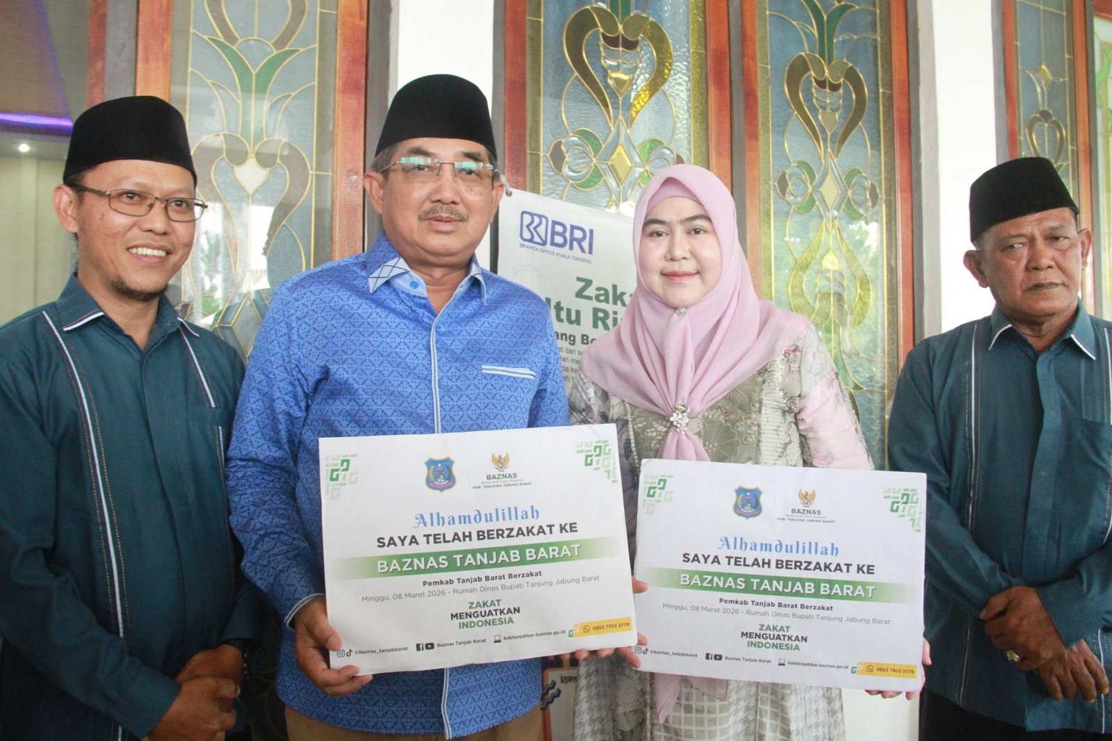 Bertajuk, Pemerintah Kabupaten Tanjung Jabung Barat Berzakat yang berlangsung di rumah dinas bupati, Minggu (08/03/2026).