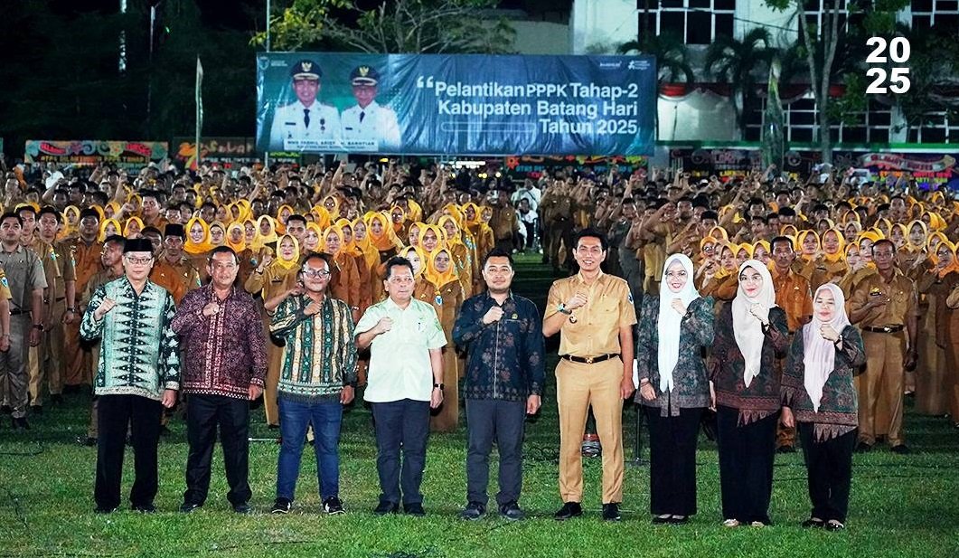 “ Saya atas nama pemerintah Kabupaten Batang Hari mengucapkan selamat kepada seluruh PPPK yang telah diambil sumpah dan menerima SK pengangkatan periode kedua Tahun 2025.”.