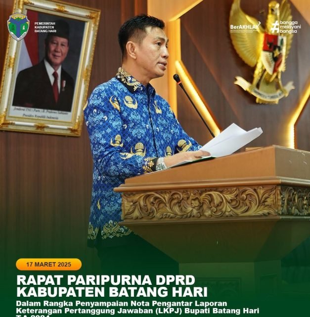 Dalam sambutannya Bupati Mhd Fadhil Arief menyampaikan, ucapan terimakasih dan apresiasi yang kepada pimpinan dan anggota DPRD Kabupaten Batang Hari yang telah mengagendakan serta memberikan kesempatan untuk menyampaikan LKPJ bupati tahun anggaran 2024.