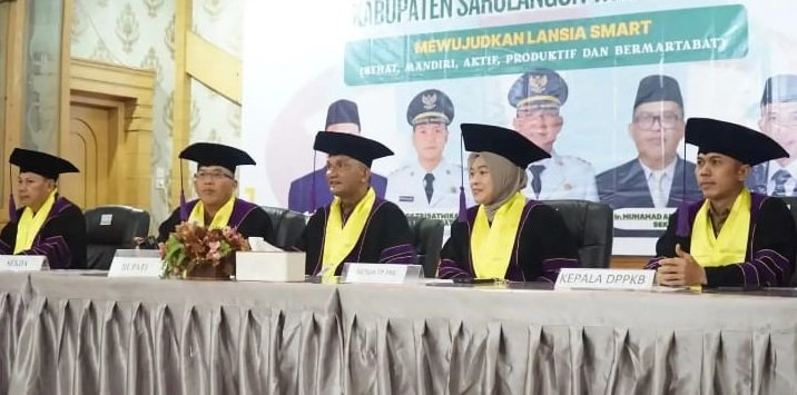 Pada kegiatan itu, Bupati Sarolangun H.Hurmin menyematkan toga kepada 148 wisudawan dan wisudawati lansia tangguh dari lima sekolah lansia di lima desa yang tersebar pada lima Kecamatan di Kabupaten Sarolangun.