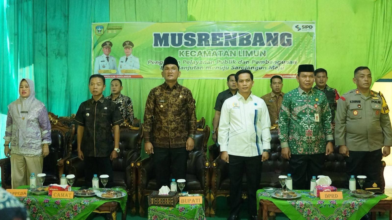 Gojambi.id. Sarolangun- Bupati Sarolangun H. Hurmin menghadiri sekaligus membuka Musyawarah Perencanaan Pembangunan (Musrenbang) tingkat Kecamatan Limun Tahun 2026, yang berlangsung kantor camat Limun, Kamis (05/02/2026).