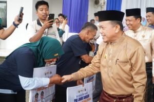 Menyerahkan secara simbolis bantuan program bedah rumah kepada puluhan warga kurang mampu di halama gedung DPRD Muaro Jambi. ini merupakan bentuk nyata perhatian Pemerintah Provinsi Jambi terhadap peningkatan kesejahteraan masyarakat.