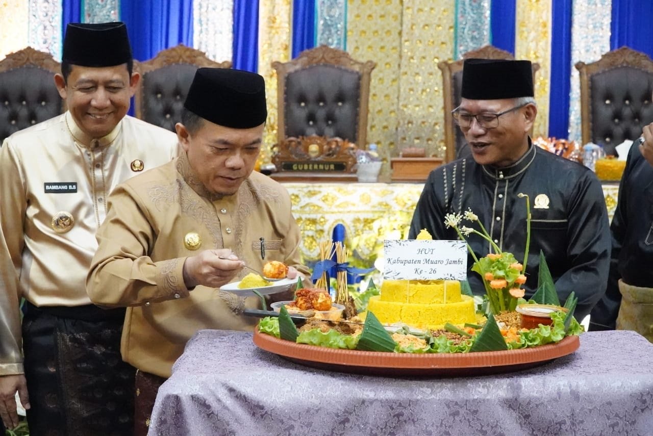 Gojambi.id. Sengeti- Gubernur Al Haris menghadiri rapat paripurna DPRD Kabupaten Muaro Jambi dalam rangka memperingati Hari Ulang Tahun (HUT) ke 26 Kabupaten Muaro Jambi yang berlangsung di gedung DPRD setempat, Rabu (22/10/2025).