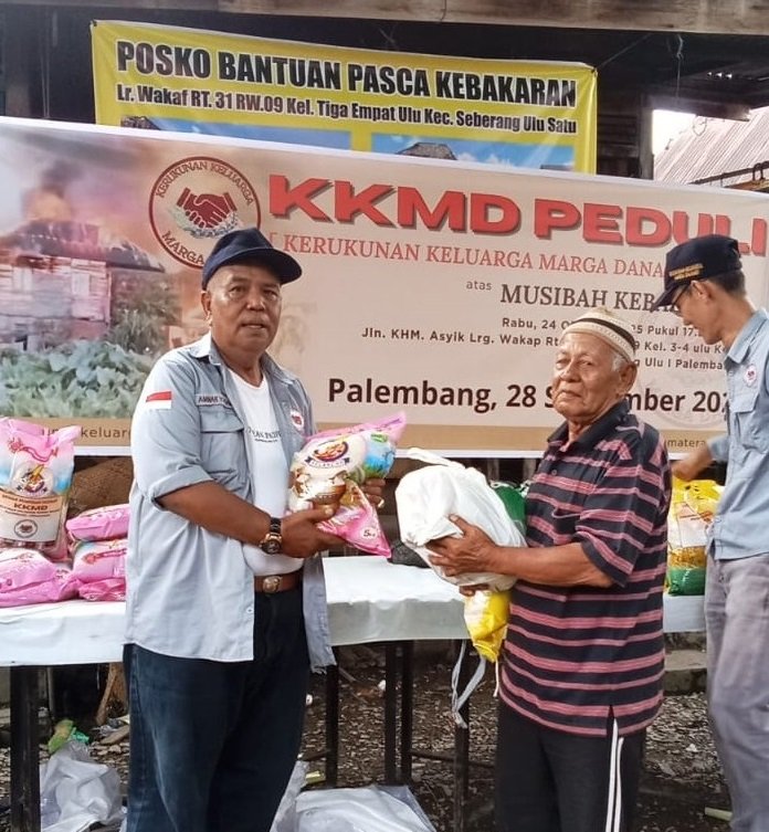 Gojambi.id. Palembang- Dewan Pimpinan Daerah Kerukunan Keluarga Marga Danau Sumatera Selatan (DPD KKMD SUMSEL) memberikan bantuan kepada korban musibah kebakaran.