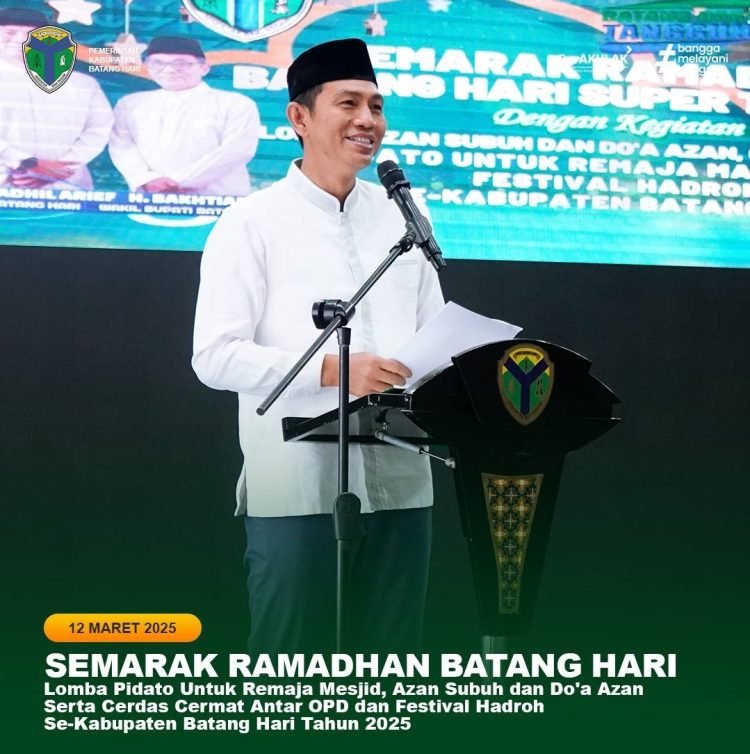 Gojambi.id. Muara Bulian-Bupati Batang Hari Mhd Fadhil Arief membuka acara lomba pidato untuk remaja masjid, azan subuh dan do’a azan serta cerdas cermat antar OPD dan festival hadroh se Kabupaten Batang Hari yang diselenggarakan bidang Kesra Setda Kabupaten Batang Hari. Bertempat di ruang kaca rumah dinas bupati, Rabu (12/03/2025).