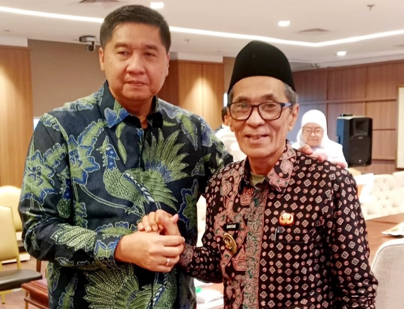 Wakil Bupati H.Bakhtiar didamping kepala Dinas Perumahan dan Pemukiman Kabupaten Batang Hari. Agenda membahas evaluasi dukungan pemerintah daerah program 3 juta rumah dan sosialisasi penyelenggaraan jaminan produk halal.