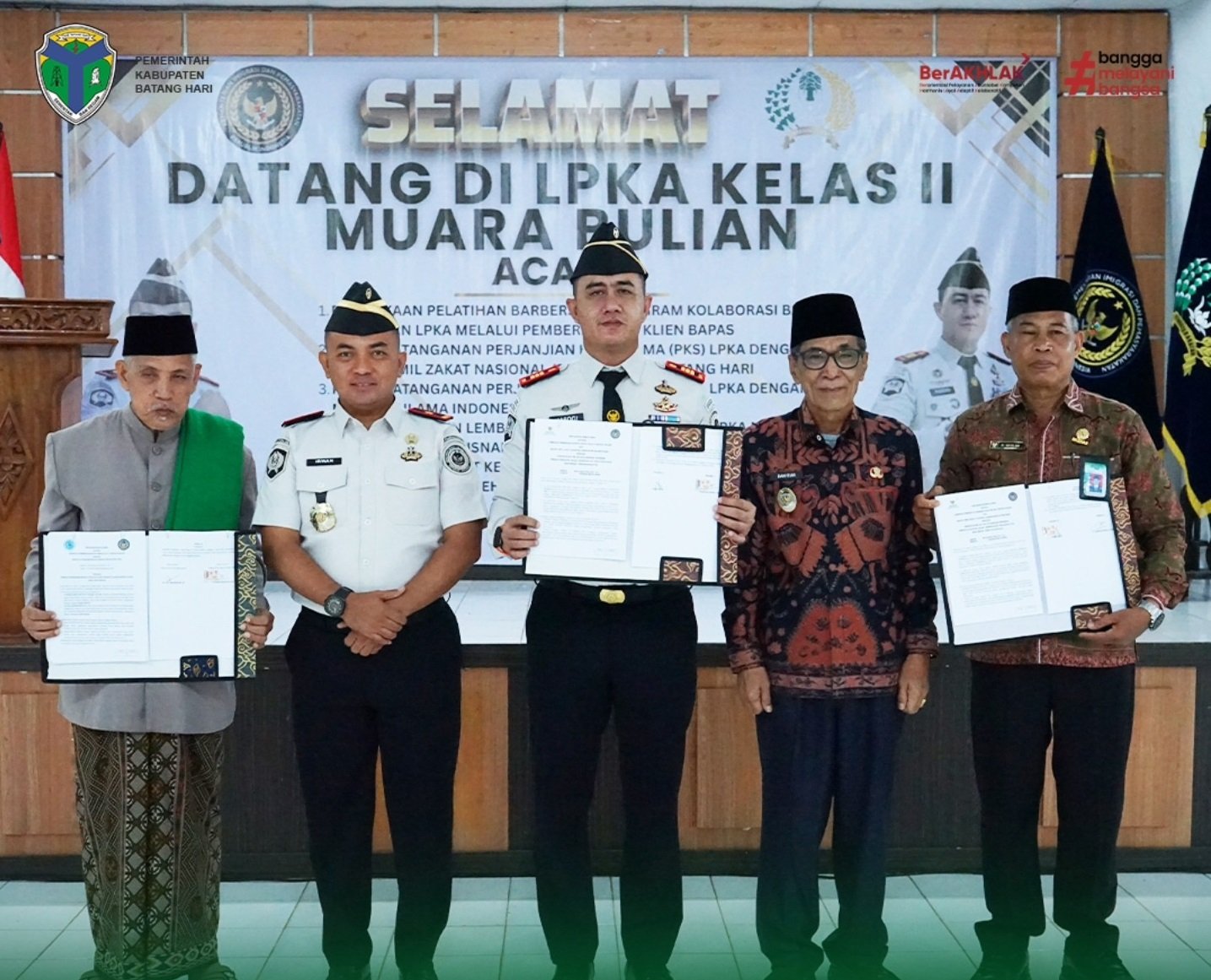 Dalam acara tersebut dilakukan penandatanganan Perjanjian Kerja Sama (PKS) antara LPKA Kelas II Muara Bulian dengan BAZNAS Kabupaten Batang Hari dan MUI Kabupaten Batang Hari.    Edward.